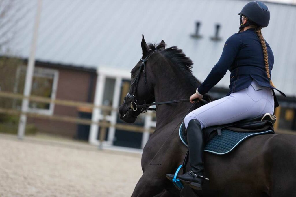 • Rijbroek wit, beige, zwart of blauw (mag niet gekleurd zijn).